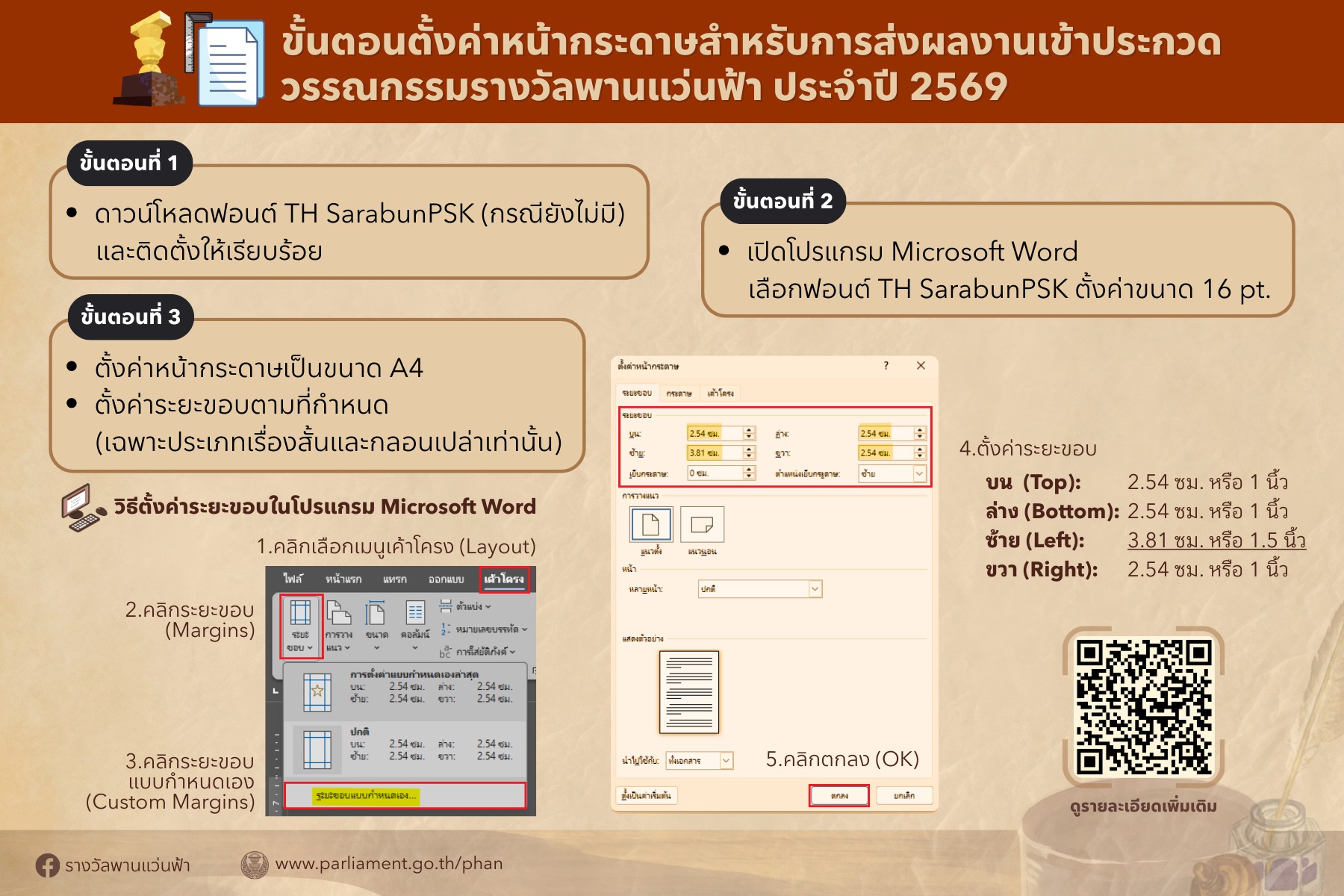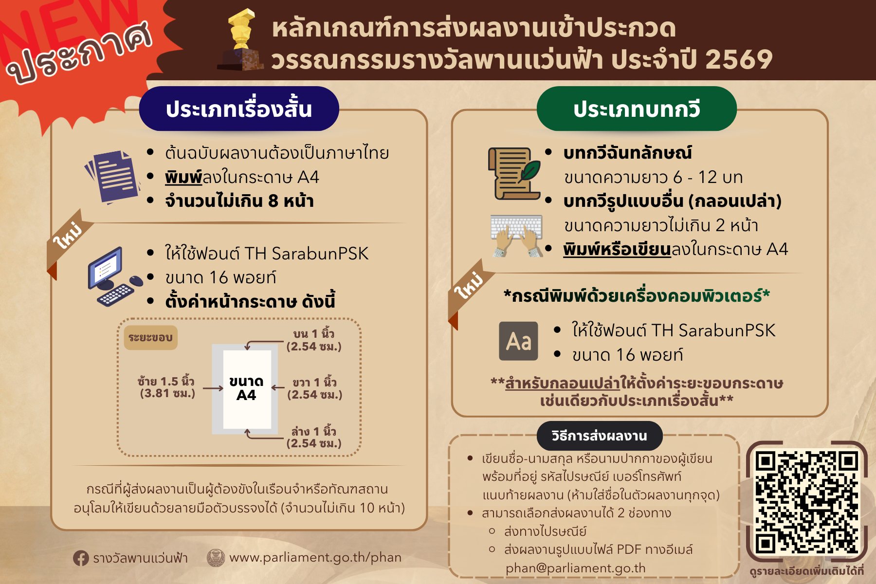 ส่งผลงานรูปแบบไฟล์ PDF ทางอีเมล์ phan@parliament.go.th